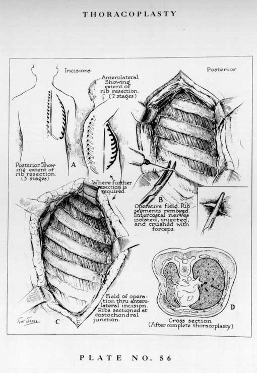Percorrendo o circuito da mostra o visitante terá acesso a uma ambientação cenográfica retratando um consultório médico dos anos 30 e 40. Nessa época era comum o tratamento pelo pneumotórax, bem como as cirurgias de toracoplastia e frenicectomia. O melhor remédio, no entanto, ainda era o descanso em sanatórios de altitude e a boa alimentação.
